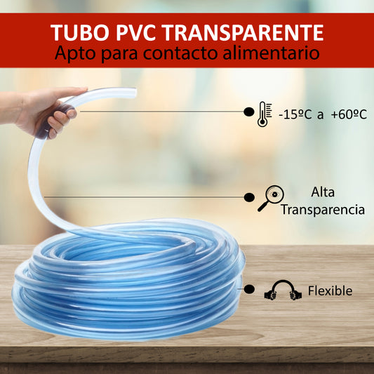 Tubo transparente flexible PVC | Riego por goteo y proyectos DIY - Alimenticio seguro, flexible y fácil de instalar.
